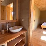 Zur Ausstattung des Badezimmers gehören auch eine getrennte Toilette und eine Dusche. Badelaken sorgen für zusätzlichen Komfort.